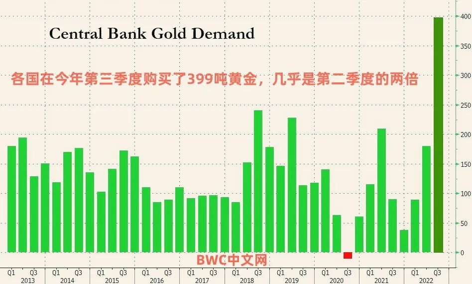 比如,据世界黄金协会在11月表示,全球央行在2022年第三季度购买了399吨黄金,这是迄今为止最多的季度黄金购买量,不过,该机构表示,其中大部分黄金是由没有公开报告购买的央行购买的,这助长了市场对中国、俄罗斯或印度等国家可能正在囤积黄金储备的猜测。