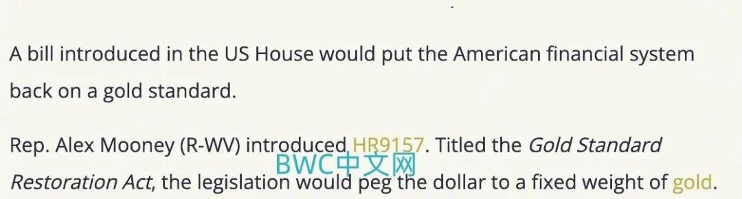 美国议员亚历克斯.穆尼在12月6日再次向国会和美联储大胆地提交了一项试图让美元货币体系重新退回到金本位的提案(HR9157),而这更像是给石油美元上了一课。