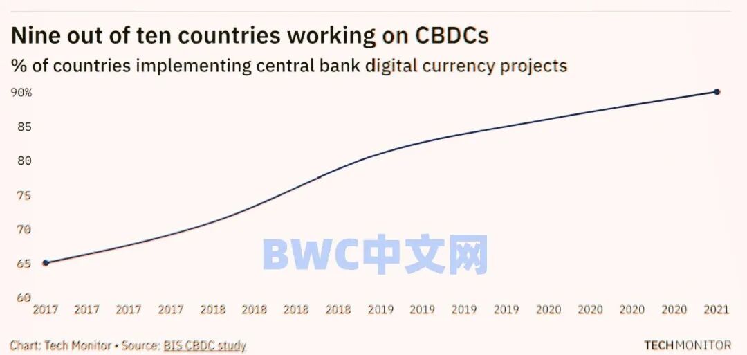 国际货币基金组织最新报告称,截至11月,全球已经有124个货币当局正在研究或已经推出数字货币,比去年11月多了62国,数字货币被认为不仅可以提高交易透明度,还有助于减少美元的储备(当一个国家在外币之外使用或代替本国货币时),这也表明全球去美元化将进入新阶段。
