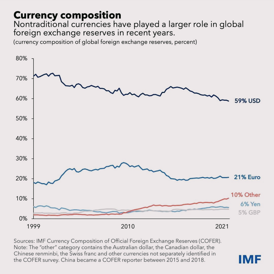 自20世纪70年代美元脱离金本位进入美债本位制以来,美元一直是全球无可争议的主要储备货币,与中东产油国家的石油美元协议巩固了美元与黄金分手后的地位,并要求各参与方以“没有美元就没有石油”这一原则来进行交易。