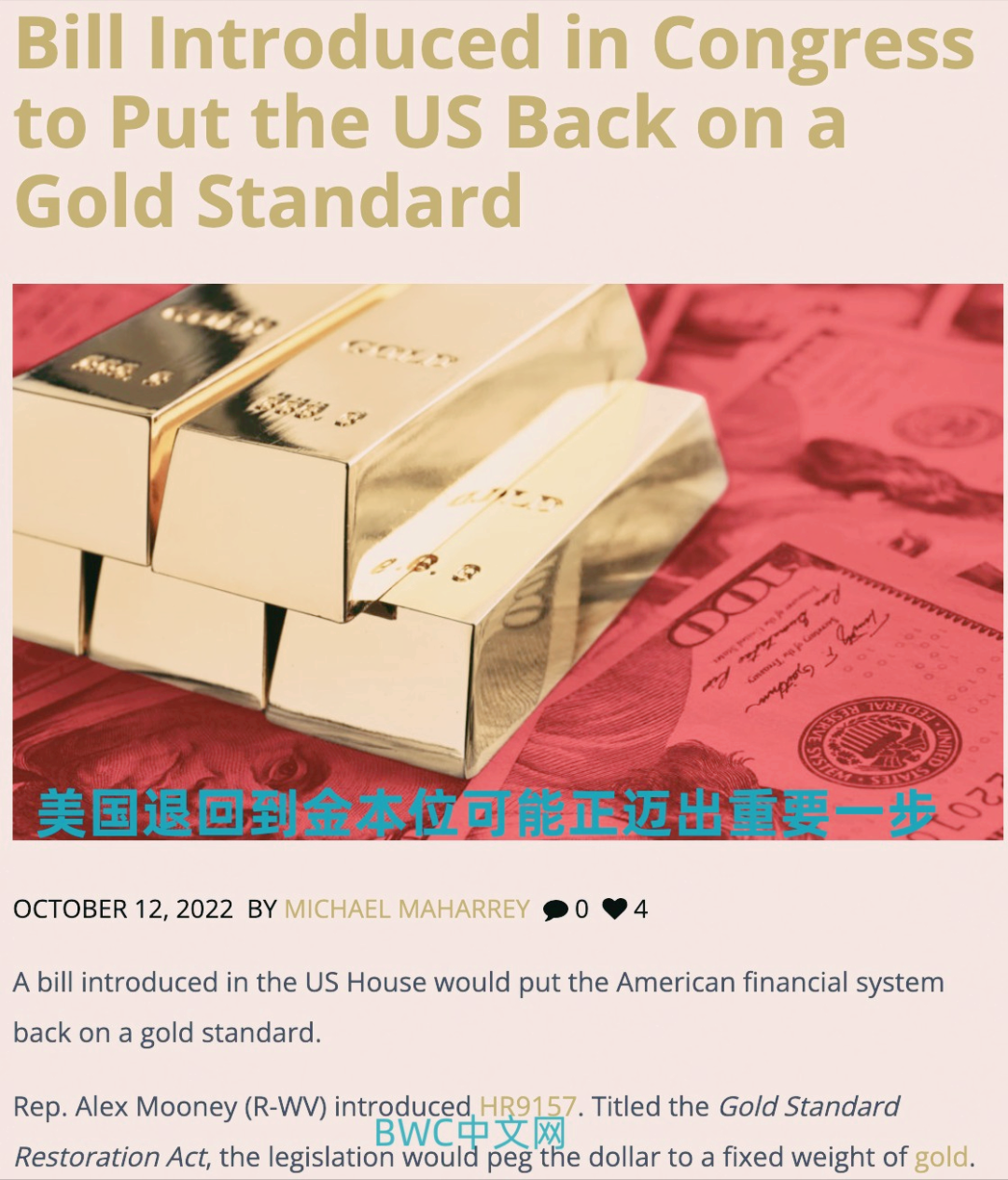 很明显,全球从当前的经济困境中恢复后,料将会削弱美元地位的价值,迫使重新思考美元的作用,寻找替代方案,比如,就在二个月前,美国有位州议员提出要让美元重返金本位制就是最好的注脚。