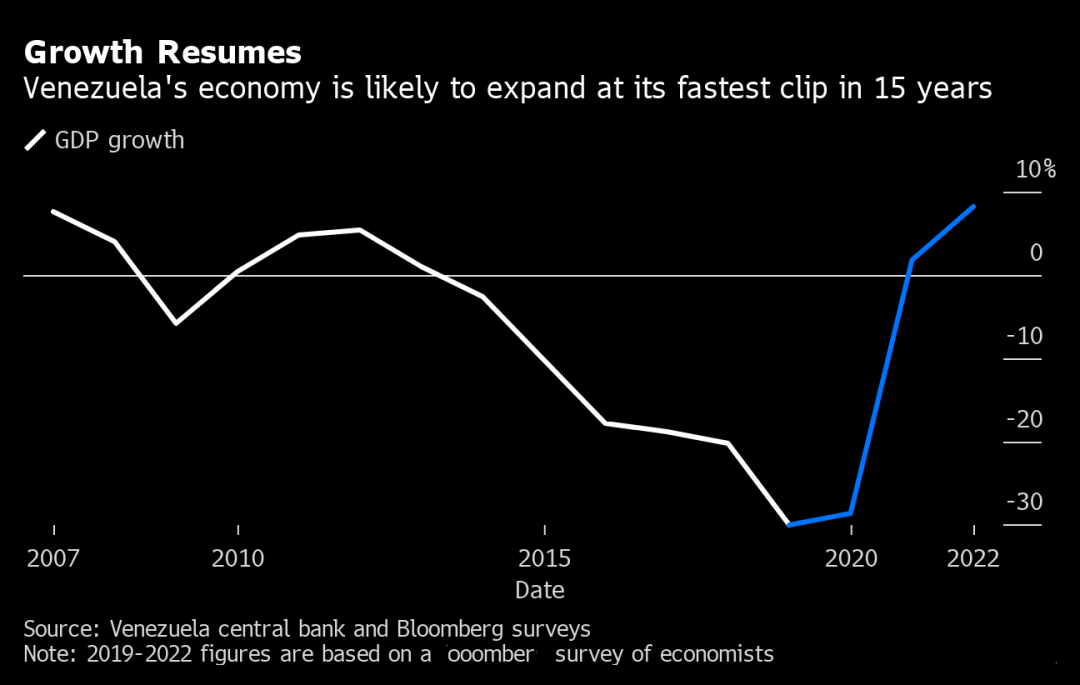 委内瑞拉央行在2022年12月30日发布的一份报告中表示,该国GDP在2022年第一季度增长了17.45%,第二季度增长了23.3%,第三季度增长了13.22%,这也使得2022年前三个季度同比增长17.73%,委内瑞拉当局在此之前已经有三年没有公布国内生产总值(GDP)。