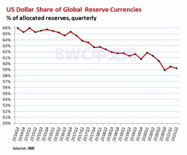 雪上加霜的是,截至10月6日,美国联邦债务总额已接近29万亿美元大关,由于债务上限到期后始终喋喋不休,包括美财政部在内的多个机构预计,美国国库或将在10月底之前耗尽资金。这就使得美元储备地位面临下降的风险进一步增大。据IMF9月30日公布的最新数据显示,美元第二季度在全球外汇储备中的占比已经下降至59.2%。对于美联储来说,如何通过对美元的松紧加以控制的方法来抑制一系列商品价格的上涨,通胀、债务及能源风险似乎显得迫在眉睫。