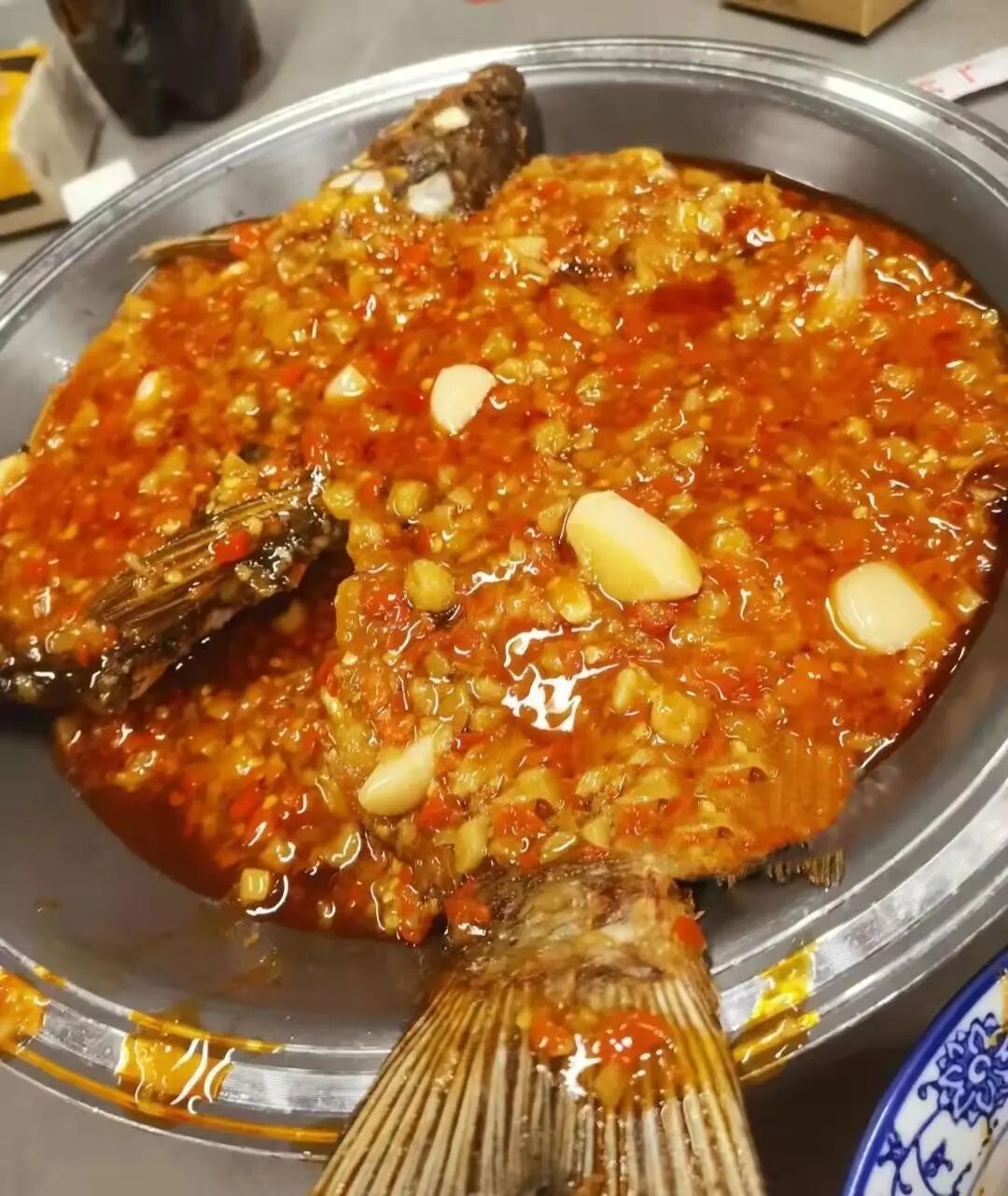 菜品很丰盛,全是江西特色菜,光一个油浸鱼菜品江西小伙王兴龙就做了近一个小时,油浸鱼是王兴龙老家南昌的特色美食菜品,这道菜品的秘觉在于辣椒酱的制作,将草鱼放入锅中油炸捞起,最后淋入辣椒酱,加入清水煮开,一道南昌特色菜品就做好了。