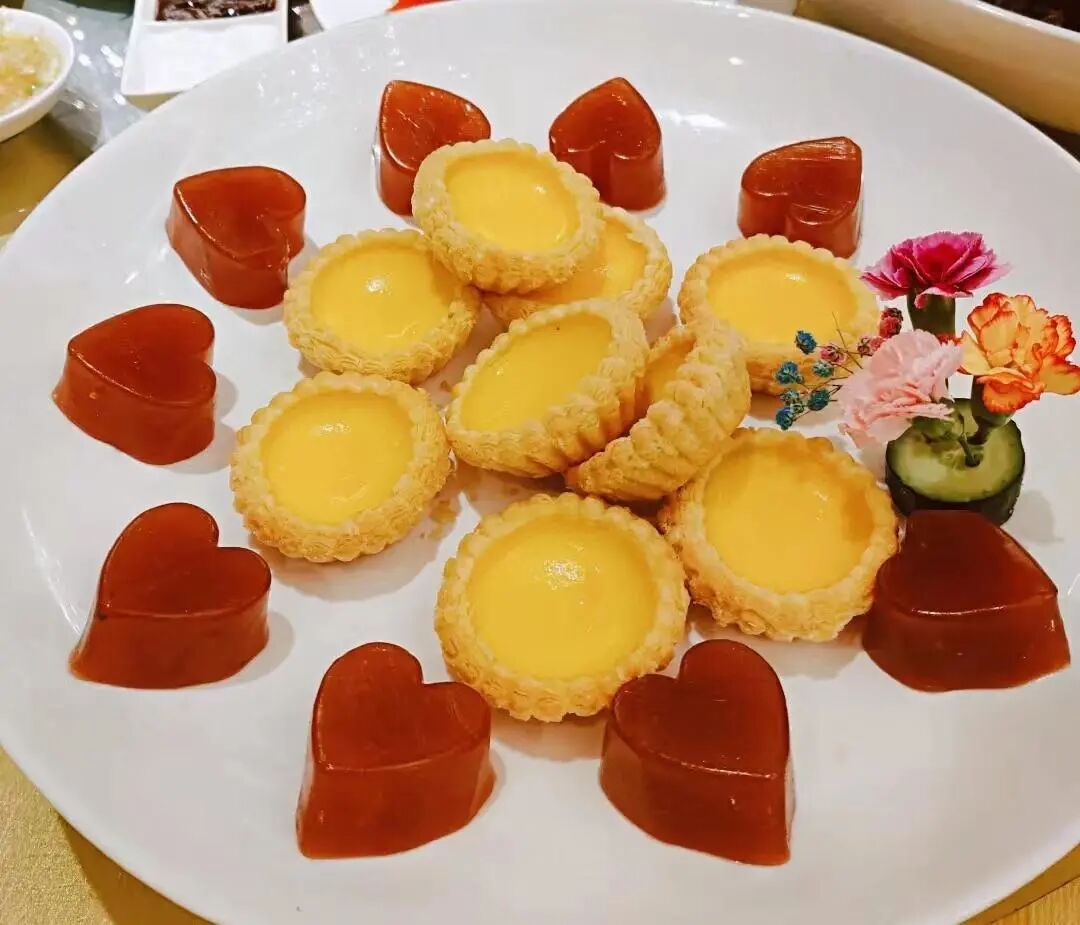 连甜品的摆盘制作都很精致,红枣糕做出了心型,口感吃起来香甜爽滑,蛋挞可是广东的特色甜品,Q弹爽口,甜而不腻,比街边面包店的蛋挞更美味。