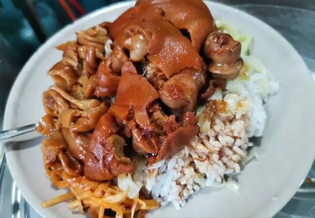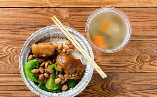 而且猪脚饭的分量大家都知道,一碗猪脚饭不到6块猪脚,而且大部分都是肥肉,接下来就是一点酸菜或者包菜,然后再加一点卤汁,这便是猪脚饭的全部。