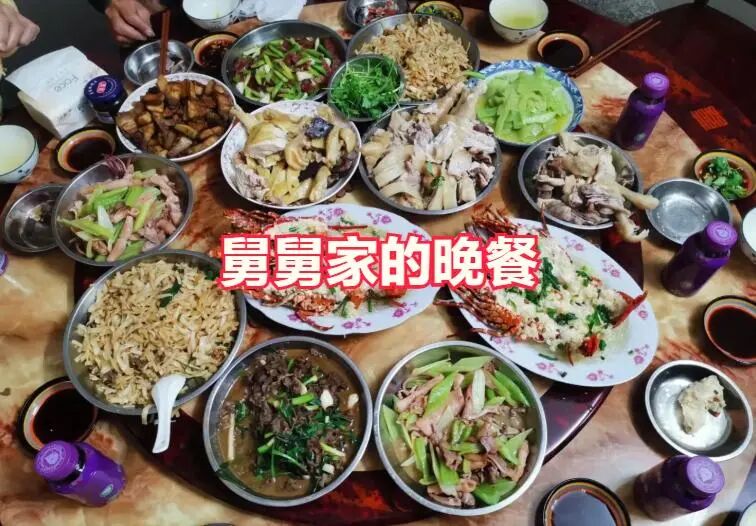 有徐文倩爱吃的大龙虾,白切鸡,鸭肉,红烧肉,清炒莴笋等13道菜品,连桌子都快摆放不下了,舅妈做的白切鸡依然是徐文倩小时候爱吃的味道。
