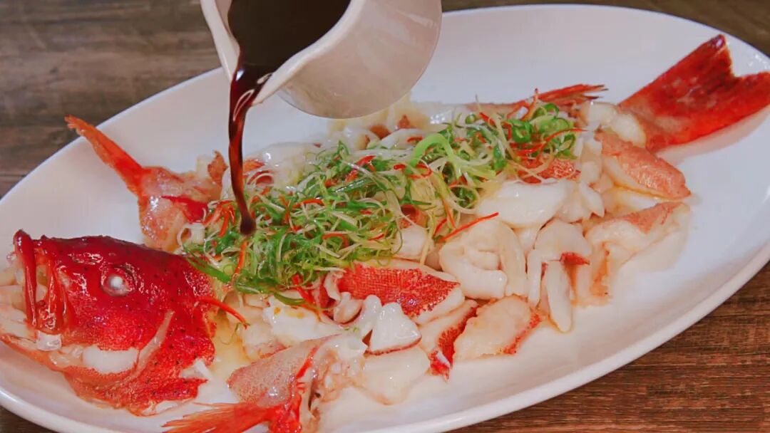 鲜红色的东星斑,一上桌顿时成为了全场的焦点,肉质细腻滑嫩,鲜香多汁。