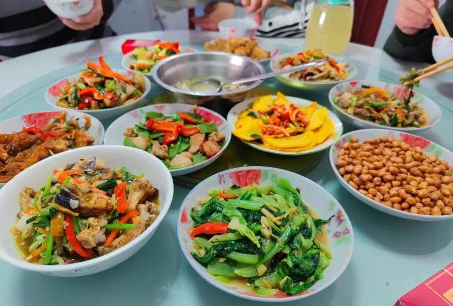 除此之外婆婆还做了蛋饺,荷兰豆炒肉,红烧鱼,啤酒鸭,花生米等12道菜品,陆小勤吃得很开心。