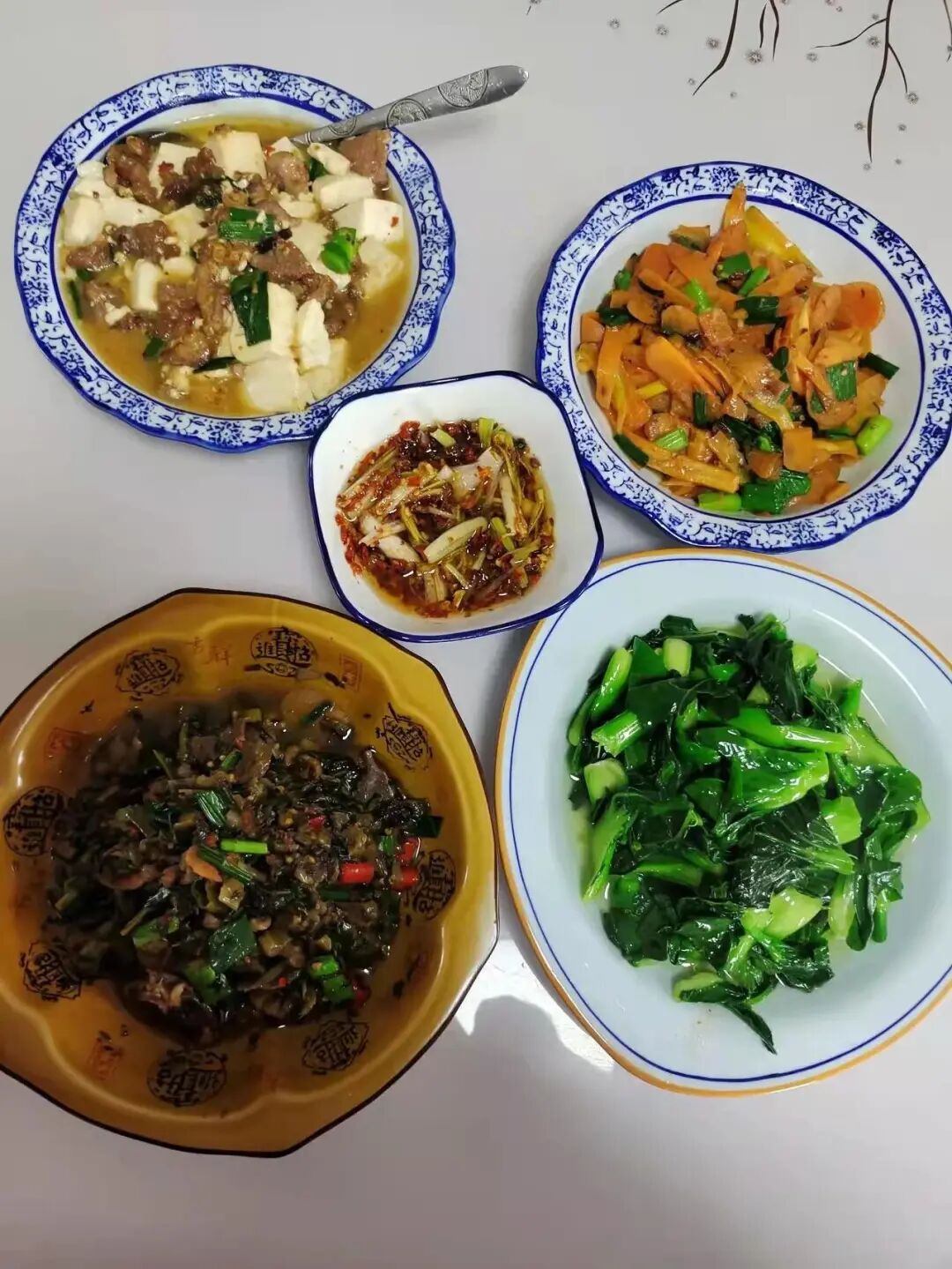 除了有清明果之外,张欣还准备了4个晚餐菜品,有豆腐烧猪肉,有猪肉炒胡萝卜,有酸菜炒鸭肉,还有一份清炒时蔬。