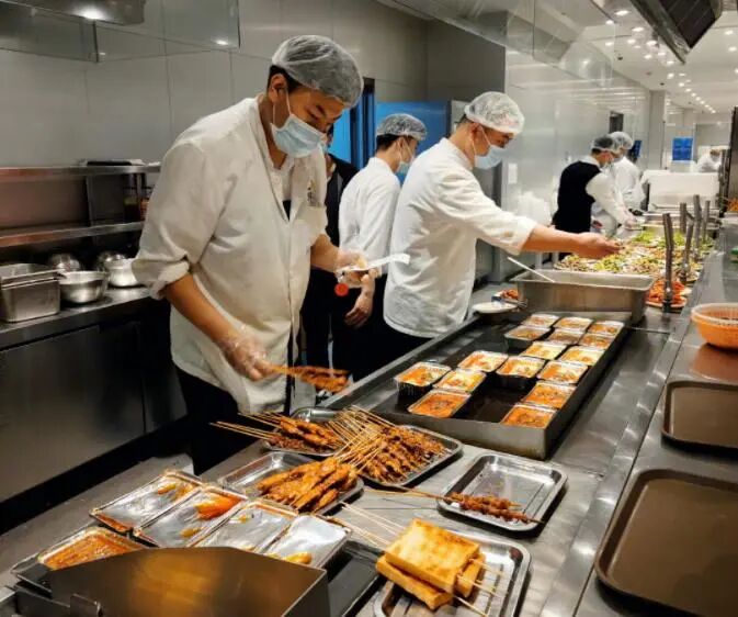 食堂每个月会举行一次聚餐,犒劳辛苦工作的员工们,聚餐的菜品更是丰盛,不仅有烧烤,还有小龙虾,大闸蟹,三文鱼各种日料,披萨蛋糕面包更是必不可少,中西结合的菜品,让员工们可以尽情的大餐一顿。