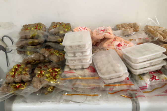 整理了一下后厨冰箱,门店还有很多的牛肉丸,牛肉丸,虾丸等火锅食材,吃完饭后,给员工们发完薪资后,赖芳进让员工们每人带一点食材回去。