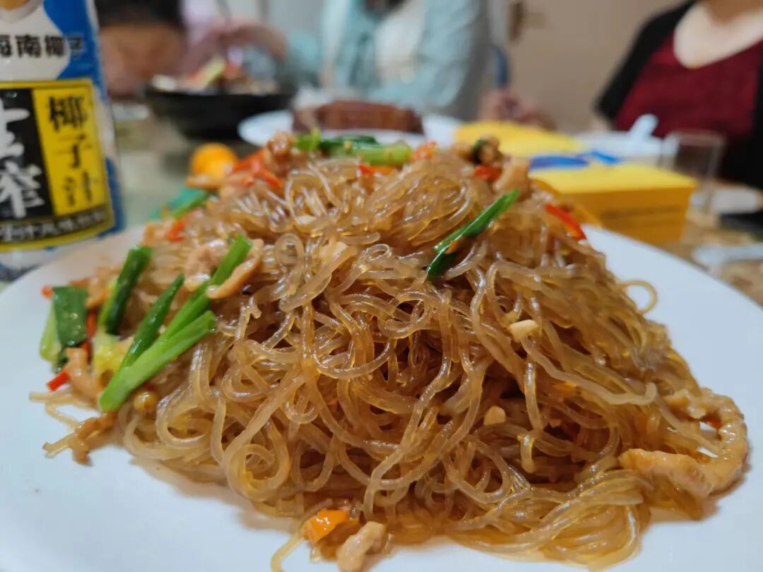 红薯粉丝炒肉,张东林以前也很爱吃,眼前饭桌上的这道红薯粉丝看起来很是美味,虽然也放了辣椒,但是量并不是特别多。