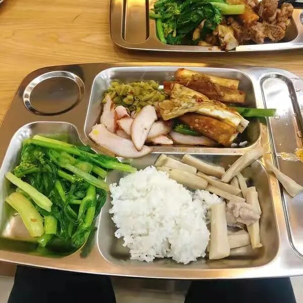 工厂食堂被老板的小舅子承包了,菜品口味难吃,而且价格贵,就这样一份两荤一素的菜品要19元,而且梅干菜炒肉也贵,根本就看不到肉。