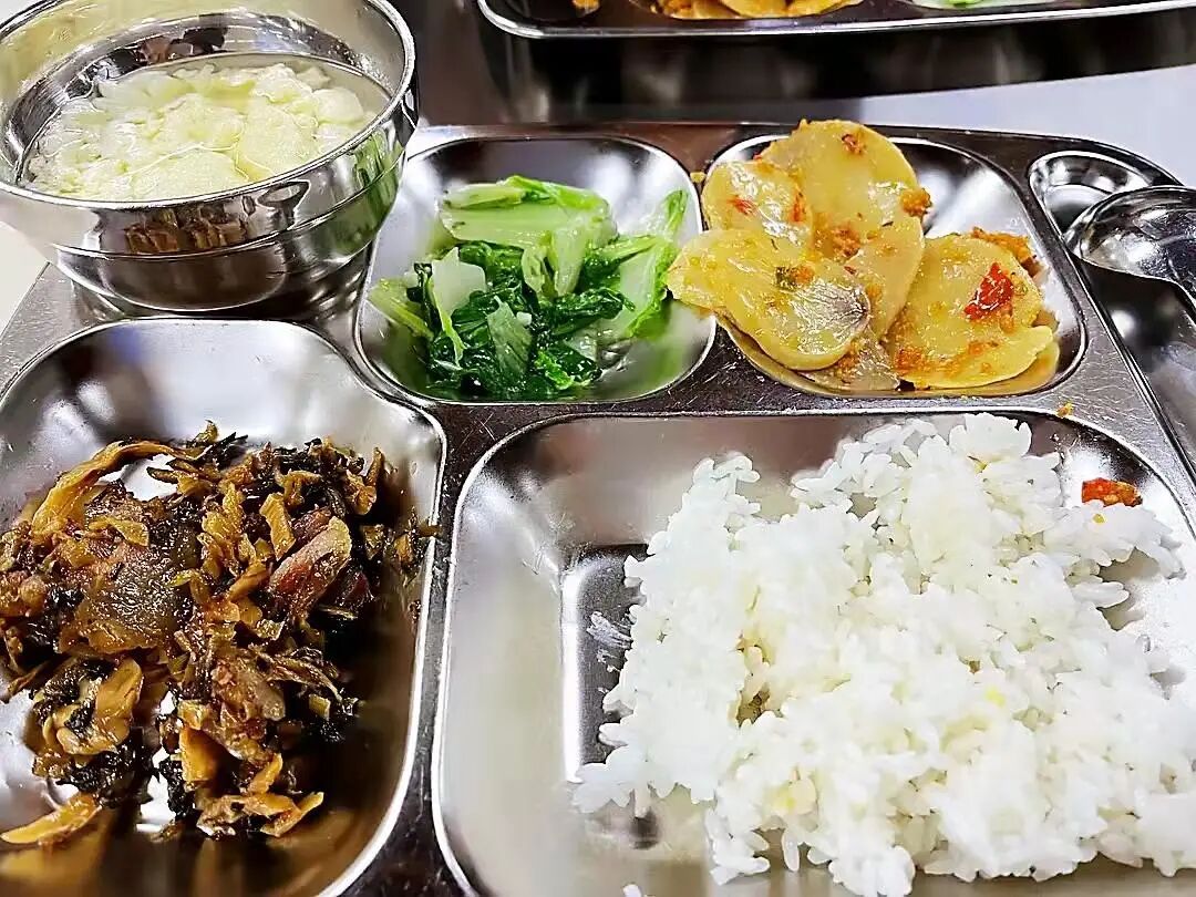 上海青连咸味都没有,陈怡涵怀疑厨师在炒的时候根本就是忘记放盐了,唯一能够下饭的就是酸辣土豆片,要不是陈怡涵去得早,紫菜蛋花汤里,别说鸡蛋了,就连紫菜都看不到。