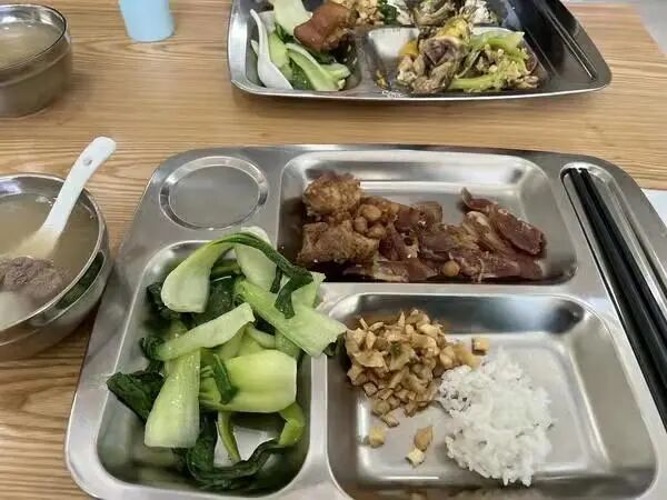面对食堂的菜品,陈怡涵说再说没啥胃口,但是肚子又饿,饭还是得吃,打了一份花菜,味道很清淡,连咸味都不足,一份清炒莴笋炒的太过头了,吃起了软绵绵的,还有一份荤菜鸭肉,吃起来腥味非常重。