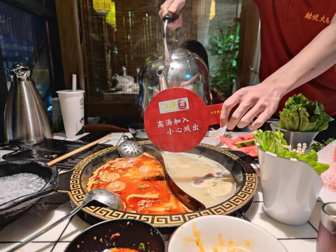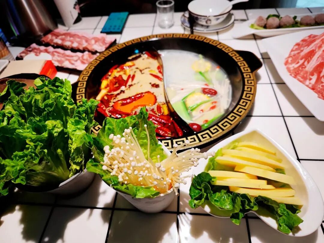 两个人有一句每一句的在尬聊,还好是吃火锅,如果喝奶茶的话,岂不是更尴尬了。