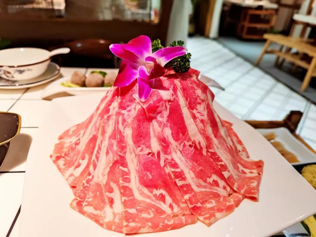 团购套餐其实更加实惠,原价219元,如今只要78元,总计有10个菜品,其中有一份雪花肥牛,摆盘非常的好看,肥牛颜色鲜红,看起来很是新鲜。