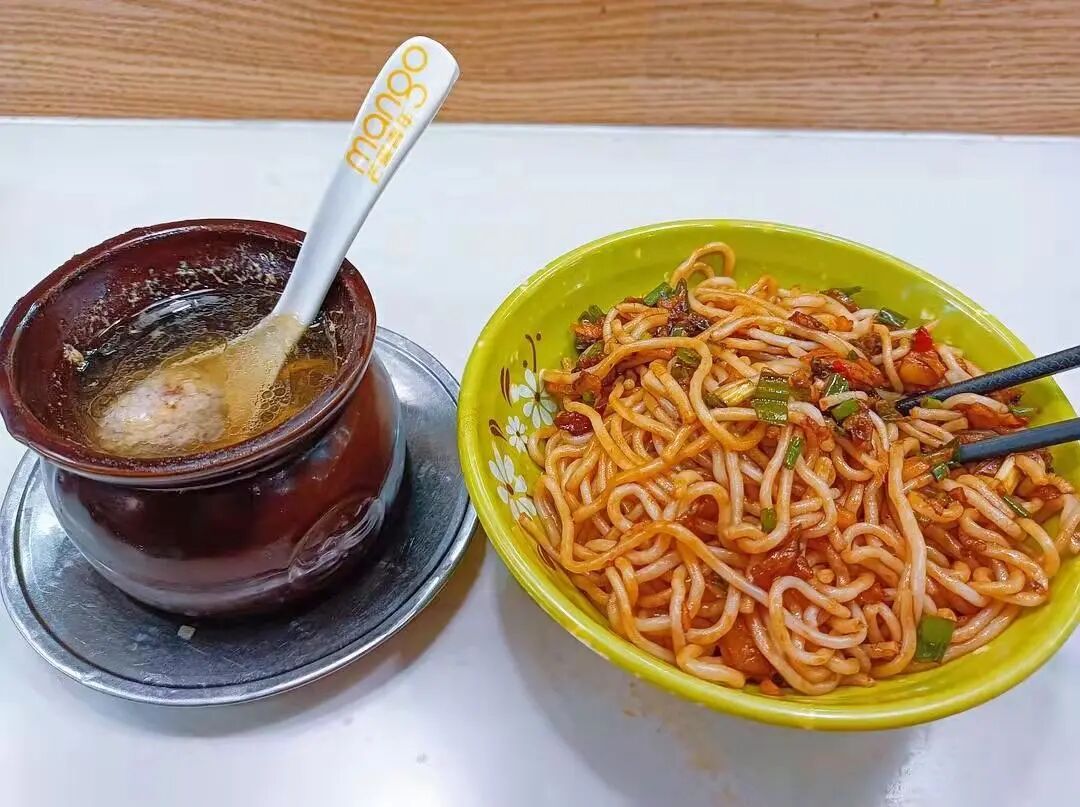 瓦罐汤配拌粉是南昌最具特色的早餐吃法,深受人们的欢迎,瓦罐汤是不辣的,拌粉看起来里面也没有辣椒。