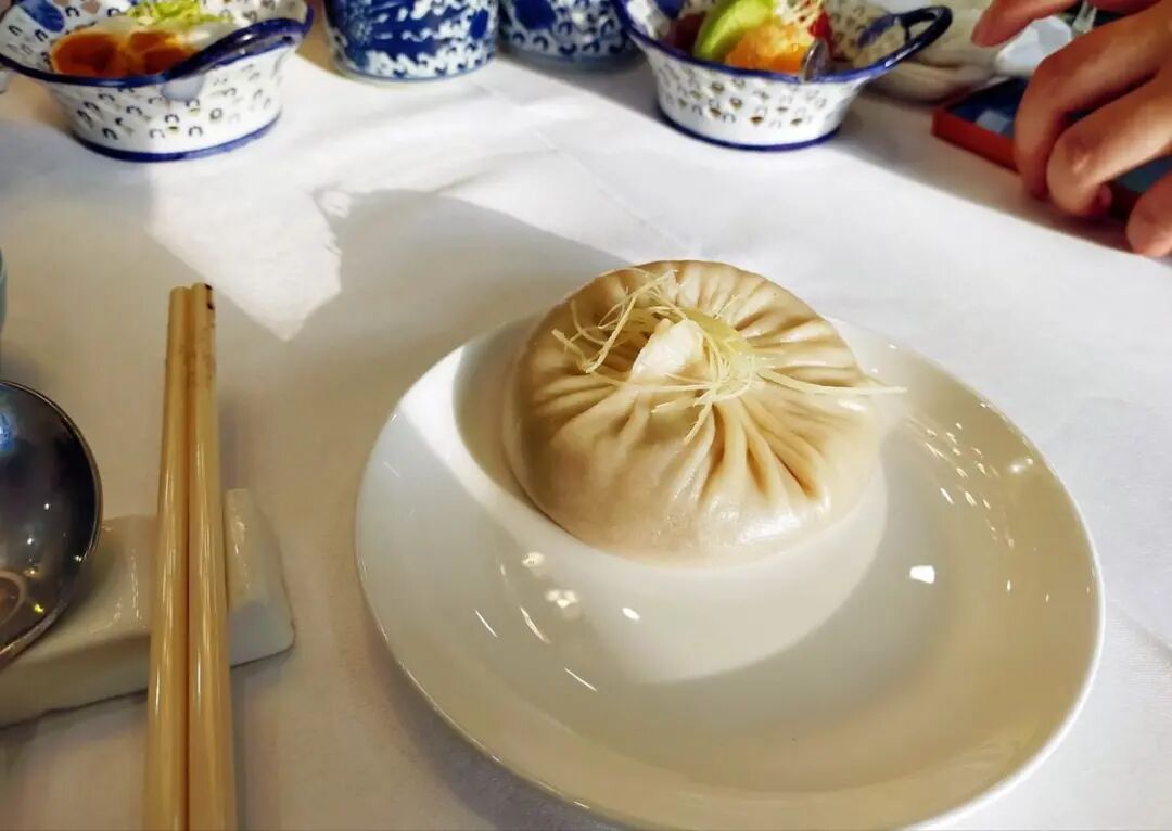 蟹黄汤包,虾籽混沌,三丁包子,千层油糕等各种扬州早茶的著名茶点做得都比广式早茶更精致,强调食材本味,味型上咸甜适中。