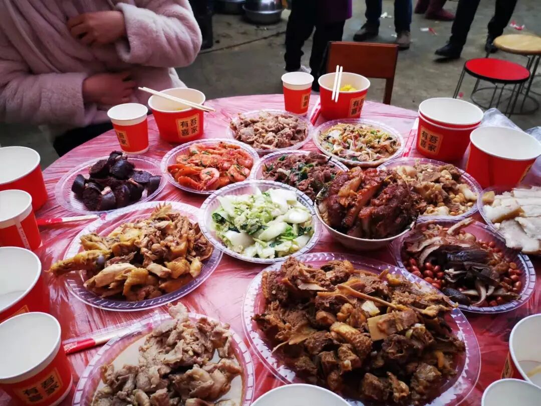 原来这才是人家的正餐酒席菜品,难怪刚刚会出现粉丝,黑木耳,土豆丝,包菜等早餐常见的菜品。