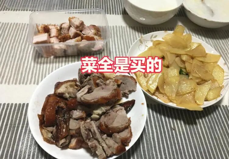 有时候买回来的熟食都已经冷掉了,妻子也是照样将其装在碟子里,摆在饭桌上,两个人就这样吃。