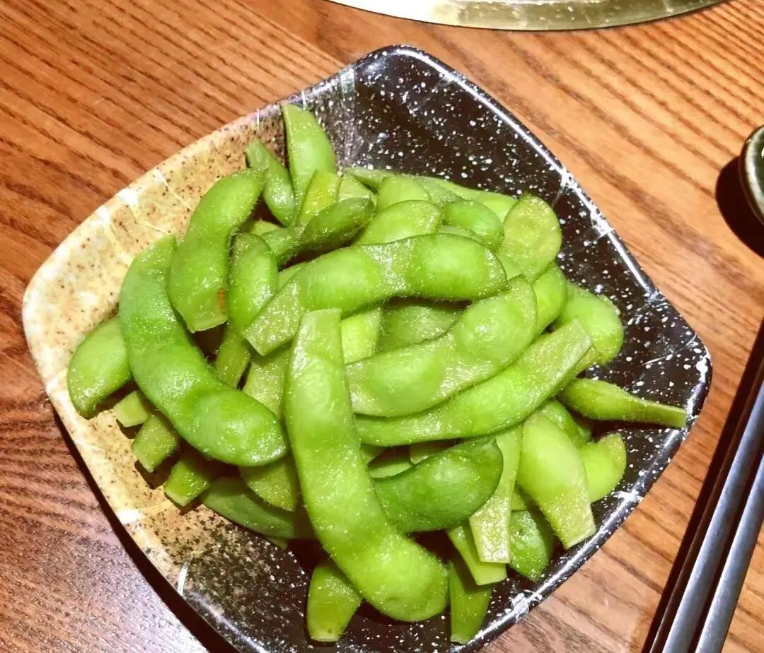 要下酒毛豆和花生米是最适合的,看着眼前一份18元的毛豆,虽然毛豆的颜色翠绿,看起来很鲜香,但是这个毛豆品质不行,干瘪瘪的,一看里面豆子就很小。