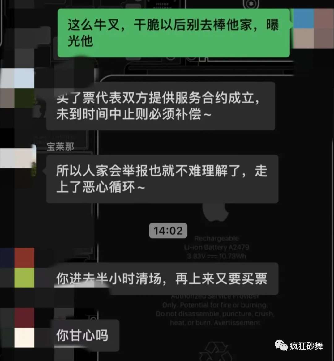 现在公众号疯狂砂舞,舞友群里,很多人因为清场问题都在热烈的讨论,有些脾气不好的人,直接扬言到,等到下次舞厅开门,他直接蹲在舞厅门口,专门报警投诉,不给他们一个说法就会再次投诉举报,直到舞厅关门。
