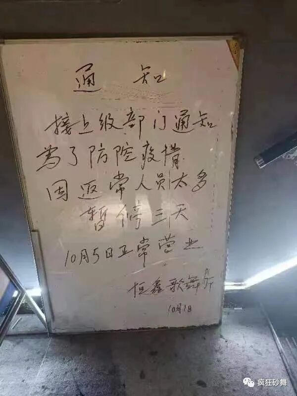 通知:常州《恒鑫歌舞厅》今天暂停营业,预计10月5日营业。