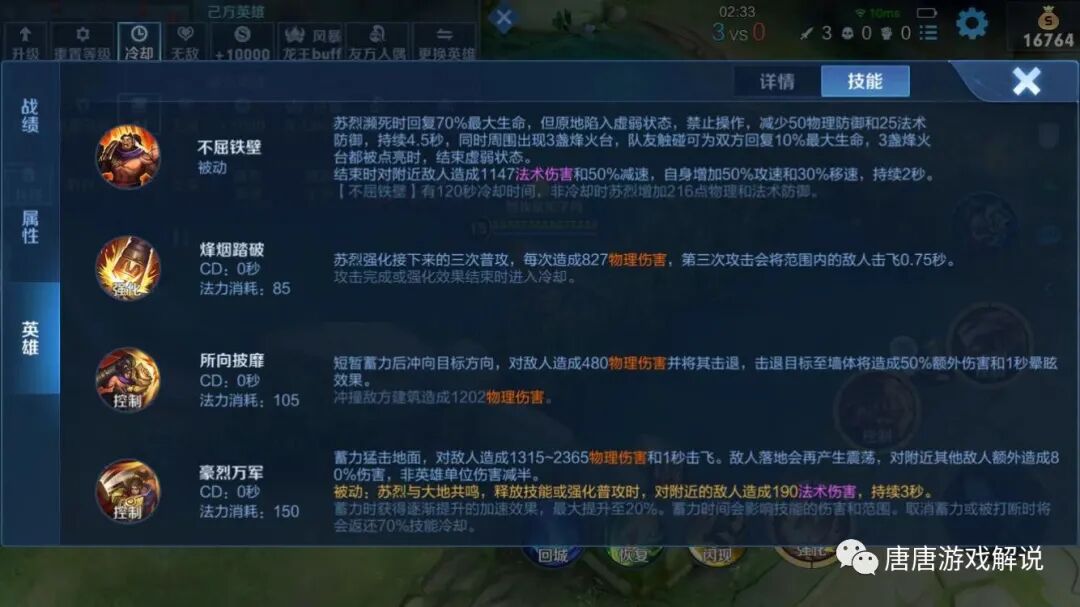 苏烈强势的原因很简单,主宰暴君效果的强化让团战强势的阵容更具优势,往往能在关键团战获得一波胜利之后,就一路平推将对方的水晶击碎获得胜利,而苏烈恰恰就是打团非常厉害的。而且他的技能机制很优秀,被动的复活效果相当于自备复活甲,意识差的玩家失误之后也还有补救的机会,大范围且附带高伤害的大招更是能决定胜负的关键,击飞还能让大乔的回城技能失效。