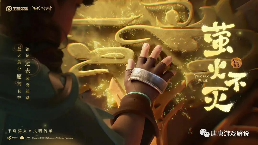 除此之外,也能做到给玩家们挑战排位的动力的作用,因为许多玩家都会选择赛季结束之前才努力一把,据悉新的S27赛季主题被命名为“萤火不灭”,版本主角是新的辅助英雄桑启。