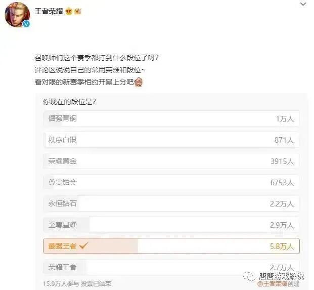这项数据来源于官方的一次投票,通过结果可以看到最强王者玩家的数量最多,取代了原本永恒钻石的位置,这也意味着玩家的实力表现也会出现变化,不能再以原本的认知去理解了。导致这种变化出现的原因,与勇者分数补偿和各种提升段位的道具出现有关,这种背景下只要愿意投入时间的玩家,基本都可以将段位提升上去,这时候就出现了新的问题,段位提升但实力没变化!