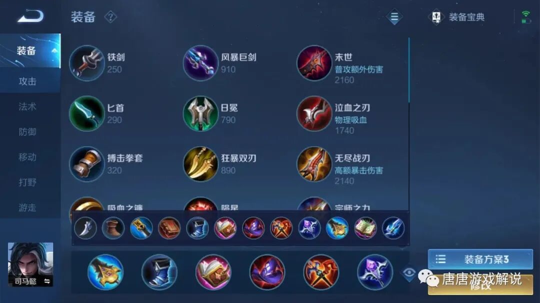 开局起手小野刀加鞋子,升级蓝刀之后就可以把穿透鞋和吸血书做出来,与其他法师不同的是他可以直接出大吸血,后续补上帽子、巫术法杖以及打穿杖。其中吸血书是司马懿和巫术法杖是核心装,前者让他切后排的时候不会被秒,后者则是提高切后排的效率,被动增伤瞬间爆发足以让被切的英雄放闪现的机会都没有就没了!