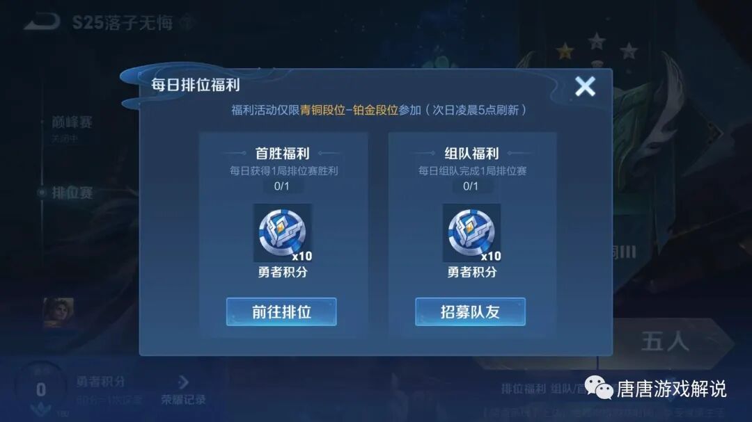 针对这个问题S25赛季可以提前更新,玩家通过新功能可以在正式服维护之前获取相关数据,在正式更新前只需要少量的数据补充就可以了,减少更新需要的时间。这样的改动的确对部分玩家有好处,但新赛季又加入了一些新的让人有些迷惑的东西,比如每天排位挑战会给勇者分,让玩家有更多不掉星的机会,上分更容易了。