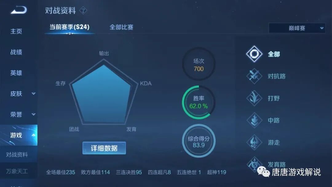 而真正可以代表实力的,其实在每个玩家的主页都有表现,而且与对局的战绩可以隐藏不同,赛季对局的数据是无法进行隐藏的,用对局表现判定实力会更加客观。一般普通玩家的评分处于70分左右,有表现好也有表现差的时候,能够被称为大神的玩家则评分需要达到80分以上,因此只要愿意花时间,评分高的玩家想要提升段位是很简单的,特别是赛季末的时候。