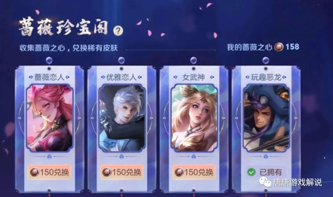 周年庆除了投票皮肤返场,还会开启蔷薇珍宝阁,四款特殊的限定皮肤也会开放兑换,其中蔷薇恋人、优雅恋人和女武神曾是内测专属,玩趣恶龙则是非卖皮肤。按照惯例开放皮肤兑换的同时,也会有相应的蔷薇之心获取渠道,根据以往的设定周年庆还有机会直接获得皮肤,但可能性就比较低了,返场皮肤很多选择需谨慎些。