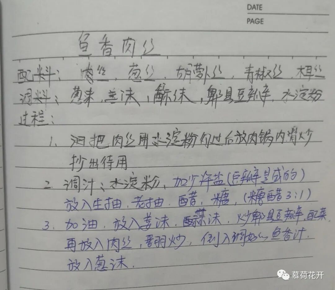 之后,我又跟着电视学做过好几道菜,鱼香肉丝,硬烧茄子,北瓜鸡丁,……对我而言每道菜做起来都是“功夫菜”,一道道繁琐的程序,我却乐此不疲,因为每一道菜都可以让儿子胃口大开。