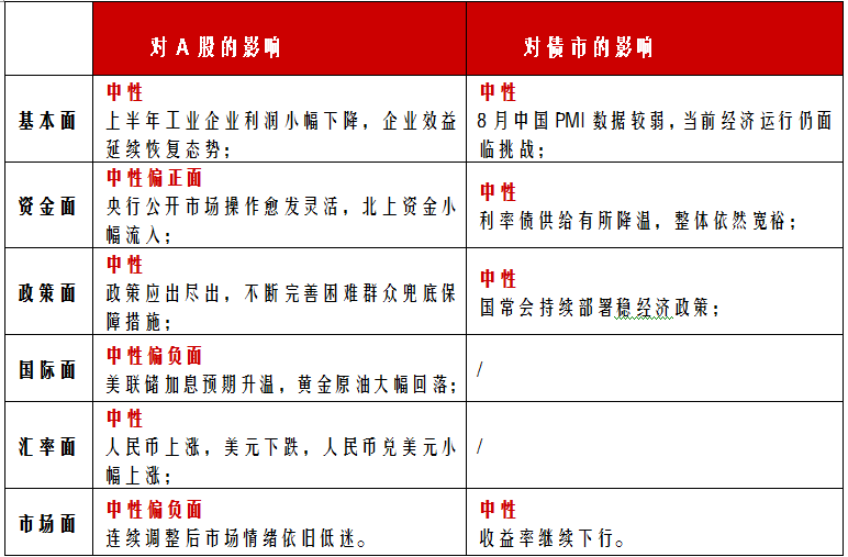 凯石基金从经济基本面、资金面、政策面、国际面、汇率面及市场面六大维度,为您展望和回顾股市和债市。