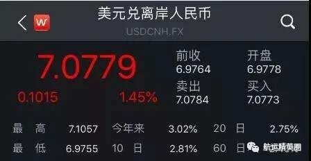9月15日晚间,离岸人民币对美元汇率盘中“破7”。数据显示,截至北京时间9月15日20时,离岸人民币对美元汇率最低下探至7.0183。在岸人民币对美元汇率也逼近“7”,最低至6.998。