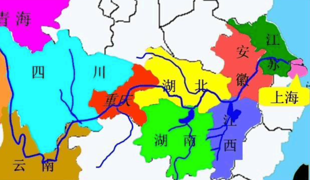 如图,英国人控制上海,就控制了中国物产最丰富的长江流域的商机