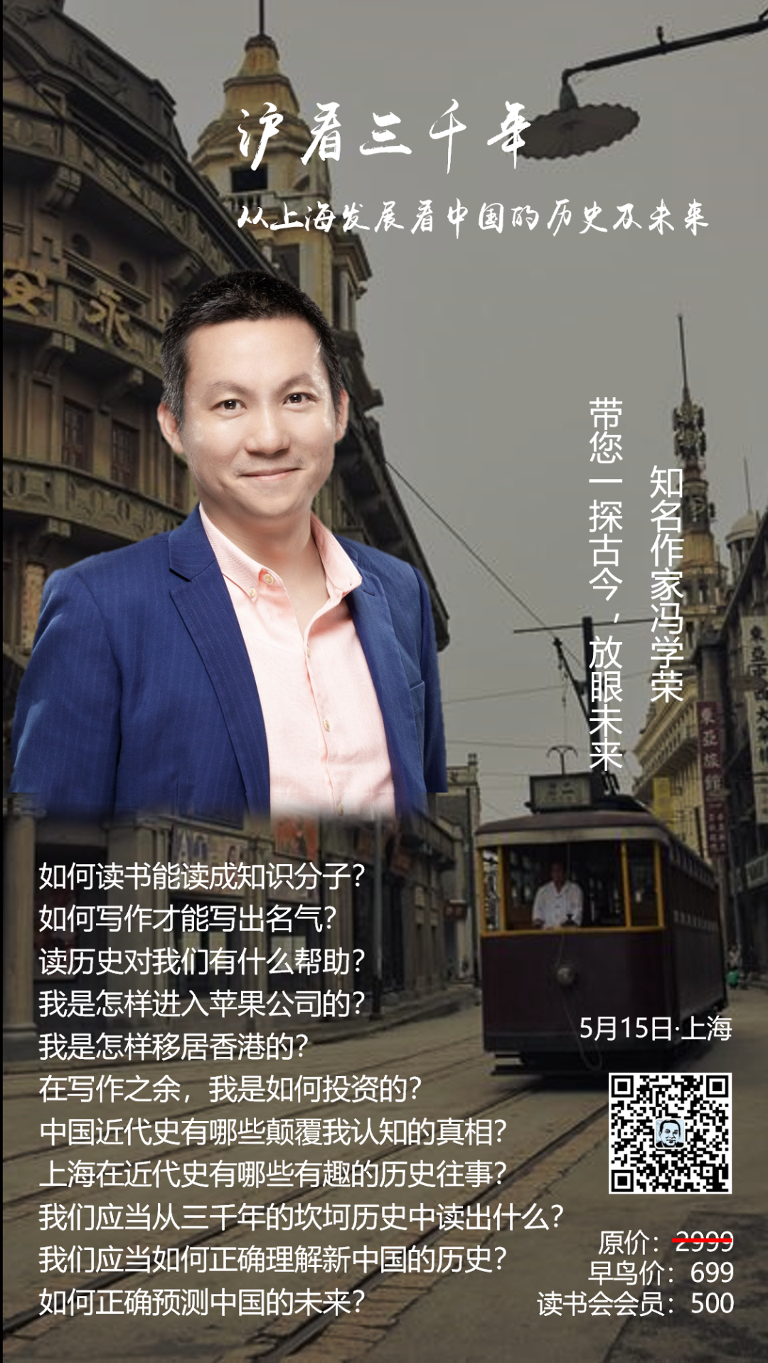 冯学荣将于5月15日下午在上海举办线下讲座活动,欢迎参加,识别下方海报内二维码报名
