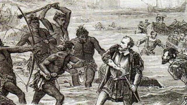 麦哲伦的许多战友,都被箭射死,或者被标枪捅穿身体。
