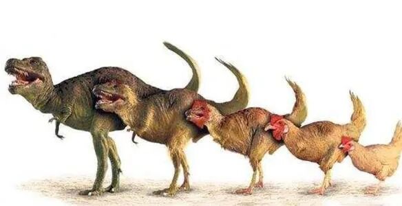 同理,既不是先有鸡,也不是先有蛋,而是先有“原鸡”。恐龙进化成原鸡,原鸡进化成鸡,“恐龙→原鸡→鸡”,同理,鸡蛋的演化,不过只是这个过程的派生品罢了,它演化的顺序是这样:“恐龙蛋→原鸡蛋→鸡蛋”。