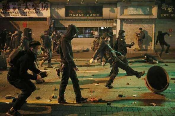有很多日子,在早上我起床上班,下了楼梯,走在湾仔、铜锣湾一带的大街上,发现一路上,那叫触目惊心:路面上很多地方的砖头,都被撬了起来,然后散落一地,到处都是一片狼籍,毫无疑问,这里昨夜爆发了黑衣青年和警察的激战,那些砖头,都是黑衣青年用铁棍撬起来,然后用来攻击警察的,当时我心想,好在昨天晚上我没有出来逛街购物什么的,否则一不小心被砖头误击,小命都保不住。