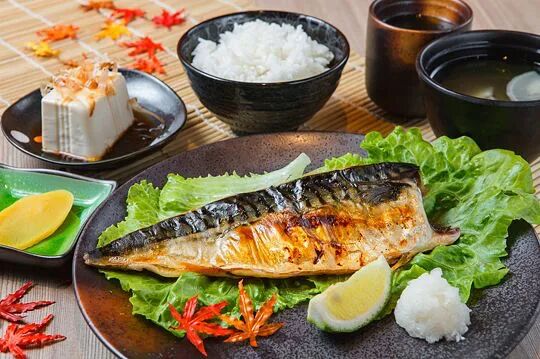 这样的“定食”,通常有一整条的煎鱼,有一碗饭,有一碗汤,饭量不大的人,能吃饱,饭量大的人,则需要再加一碗白米饭,加米饭的话呢,有些餐馆免费,有些餐馆则不免费。