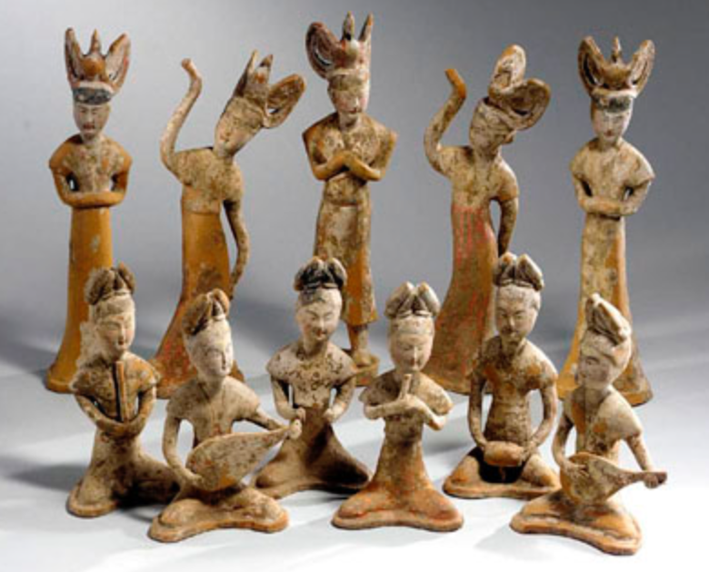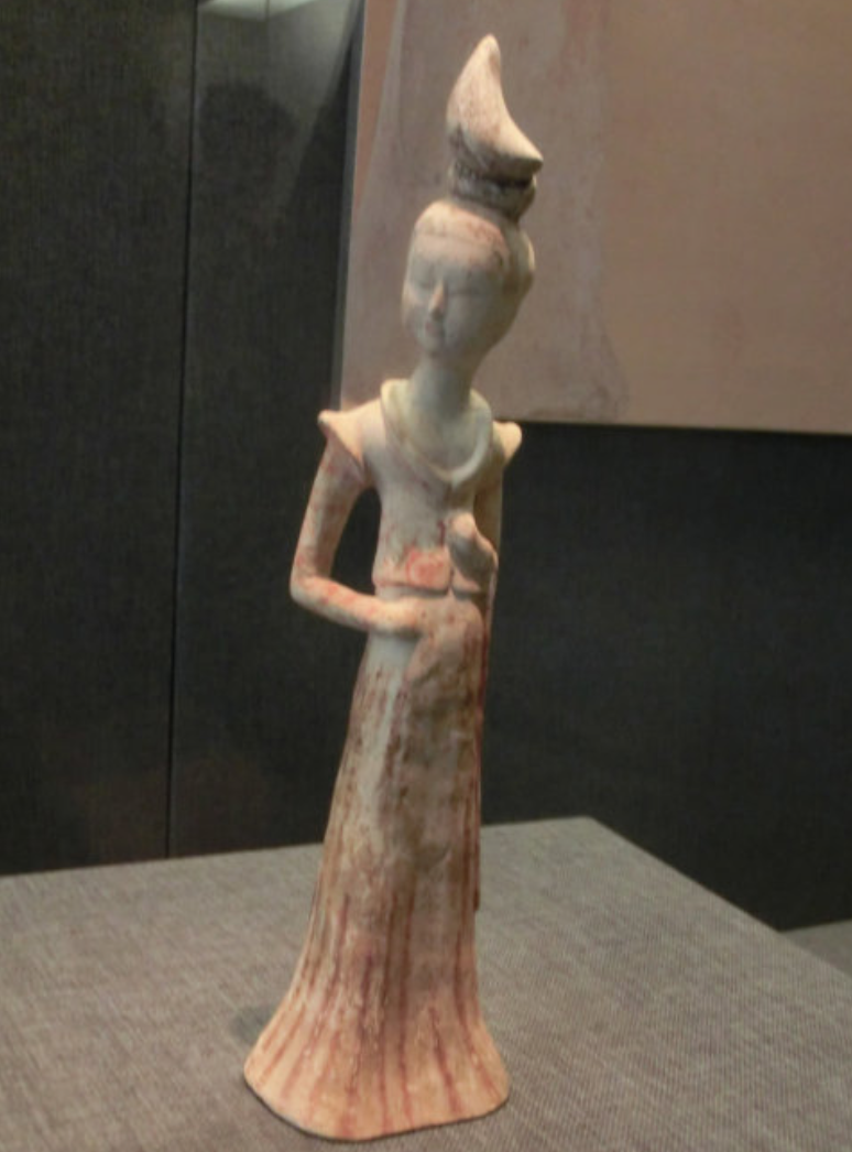 而事实上,唐代也有瘦的女人,也有“以瘦为美”的艺术作品,我们看以下这几个唐代陶俑,都是唐朝的女人,都很瘦: