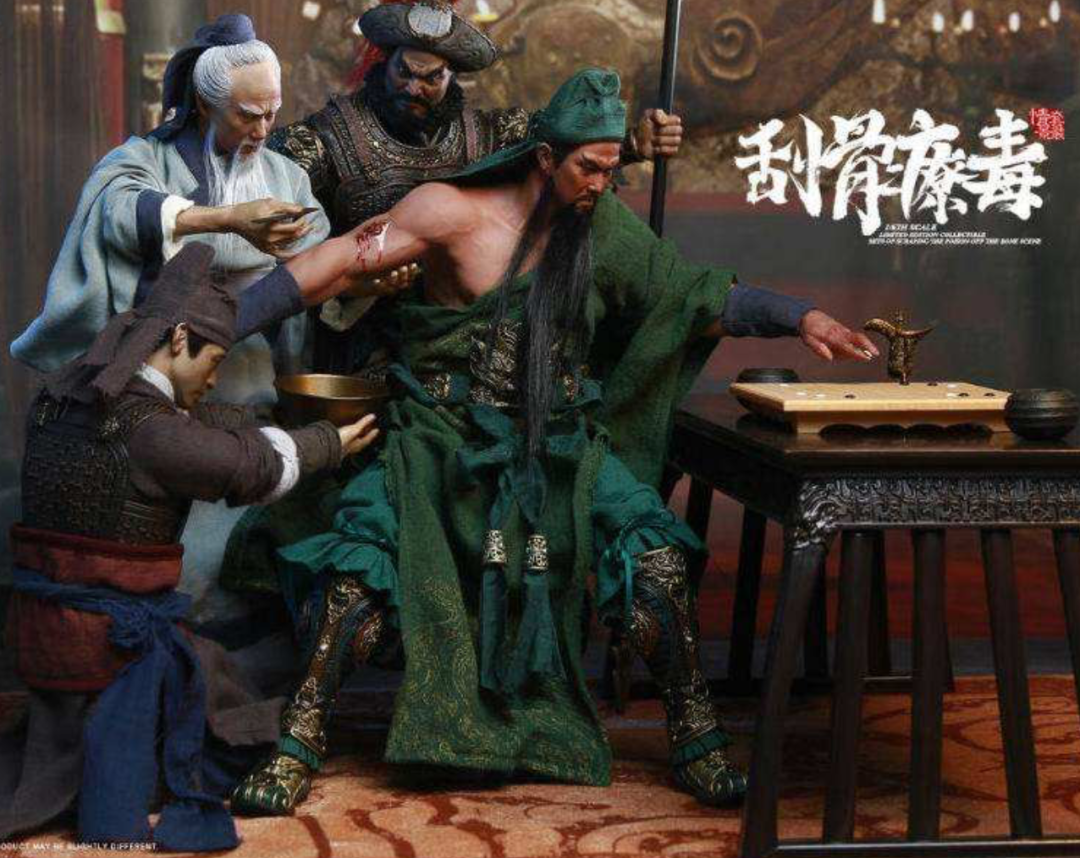 在真实的历史上,华佗给关羽刮骨疗毒的事不可能发生,因为关羽中箭是在公元219年,而华佗则在公元208年就死了