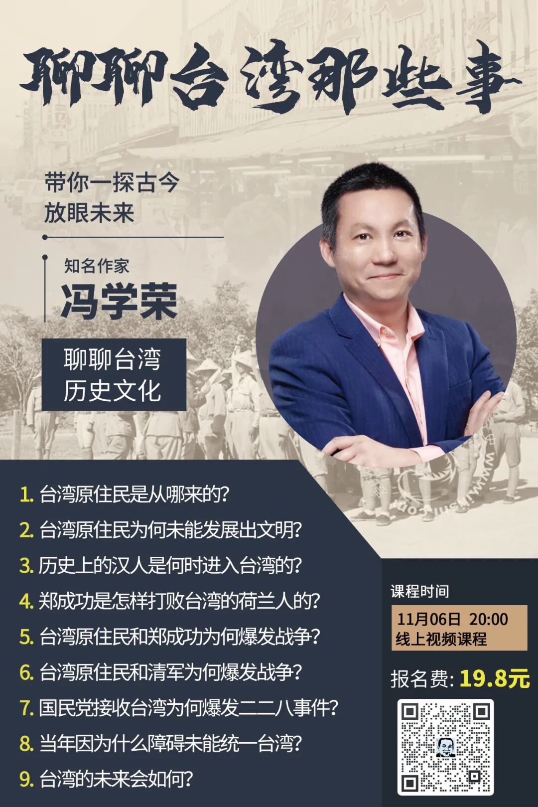 郑重声明:本文是老冯多次游历台湾的亲身见闻,诚实写下来,供读者娱乐,不涉及两岸时事,不夹带个人喜恶和立场。老冯将于11月06日(本周六)20:00举办线上视频讲座,欢迎网友们参加,识别下方海报内二维码报名: