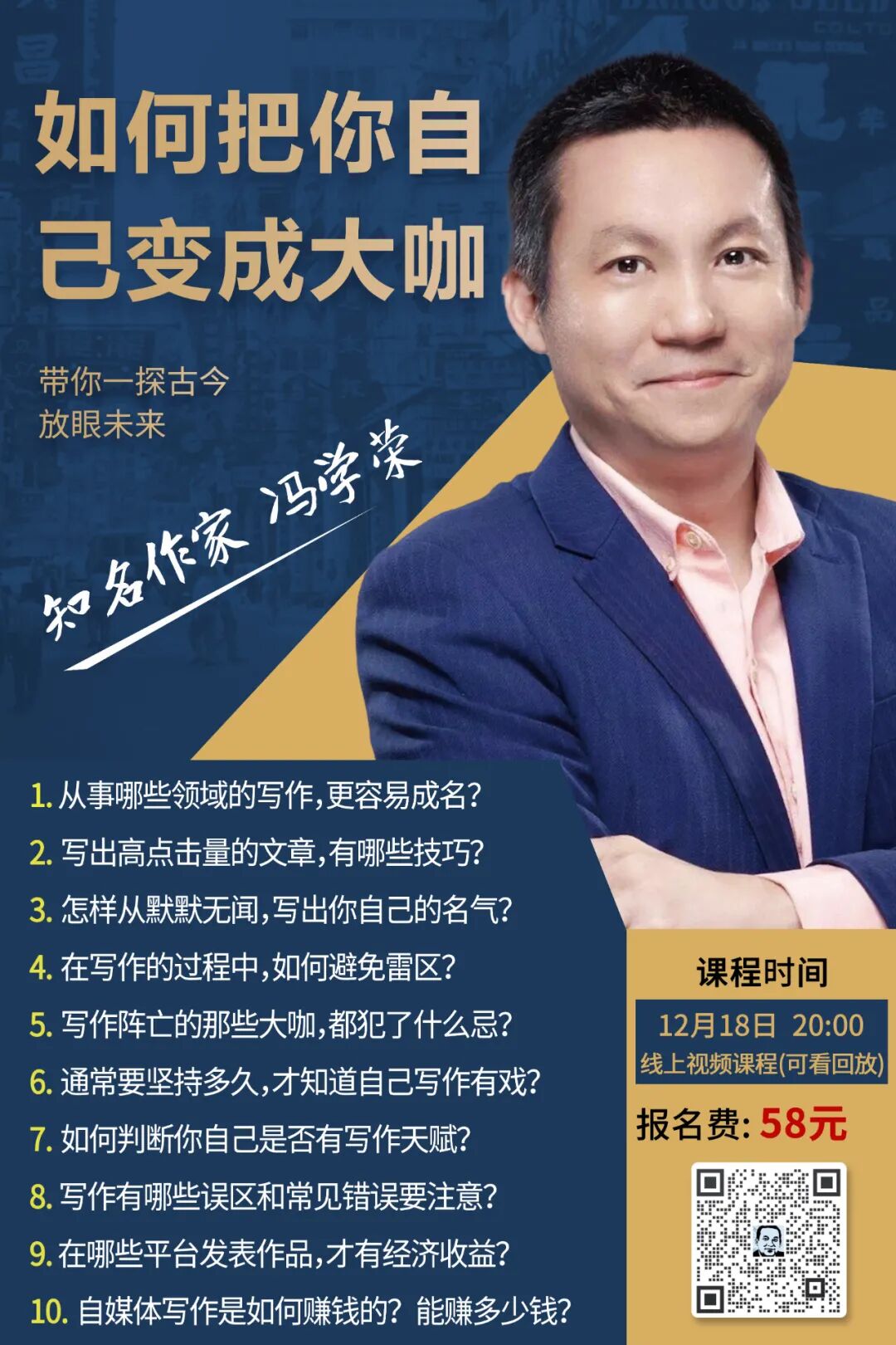 老冯将于12月18日(本周六)20:00举办线上视频讲座,手把手教你,如何变成一个大咖,一堂课,让你脱胎换骨,欢迎参加(含问答交流环节,当晚没时间的朋友可以看回放),识别下方海报内二维码报名: