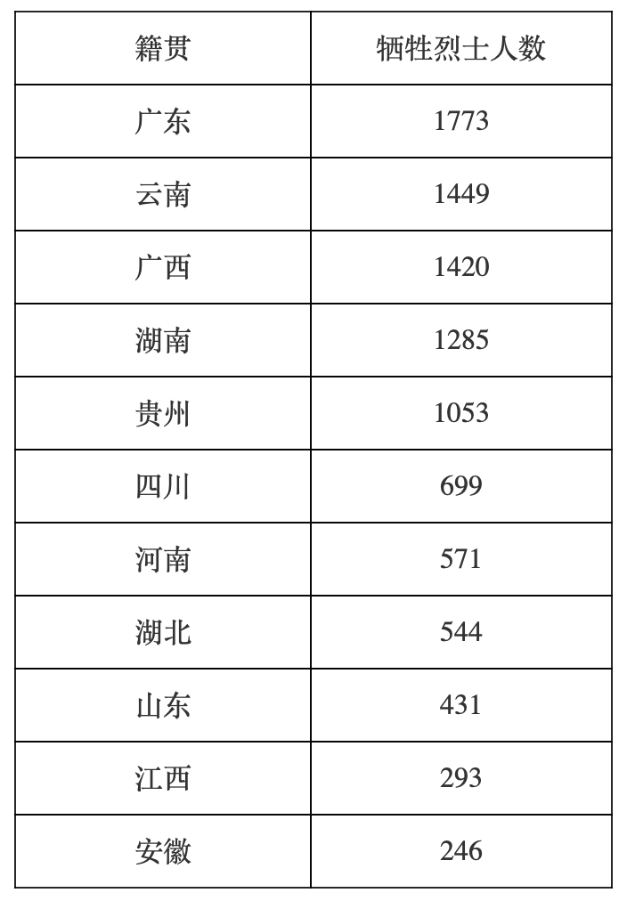 我们看,在对越自卫反击战中,广东籍、云南籍、广西籍的烈士最多。
